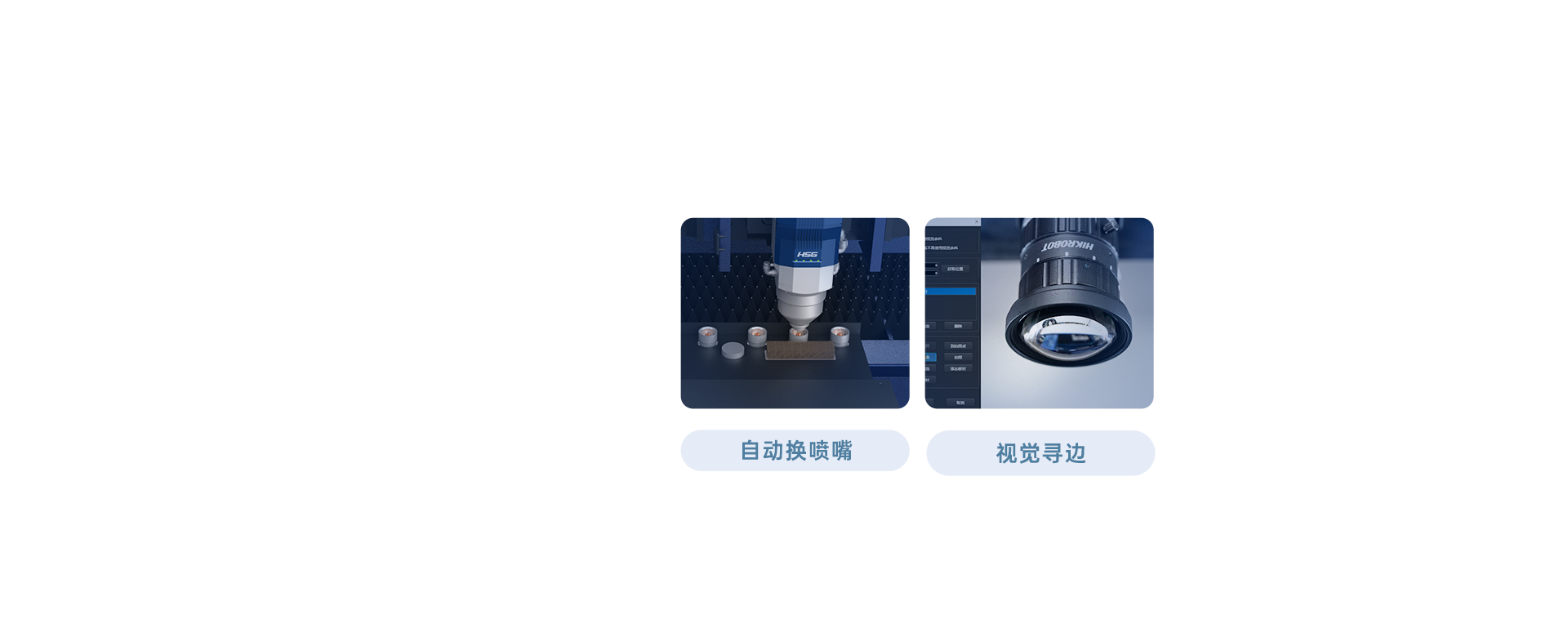 視覺尋邊、視覺余料、自動換噴嘴、自動上下料及料庫。